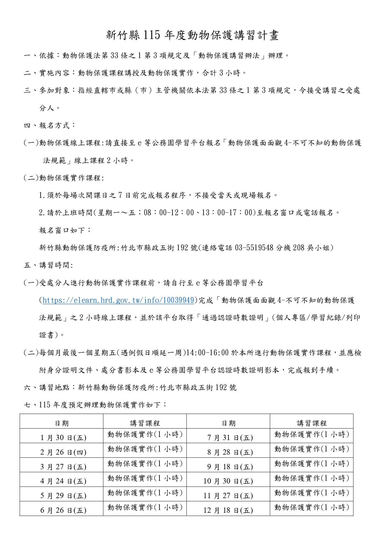 新竹縣115年度動物保護講習計畫