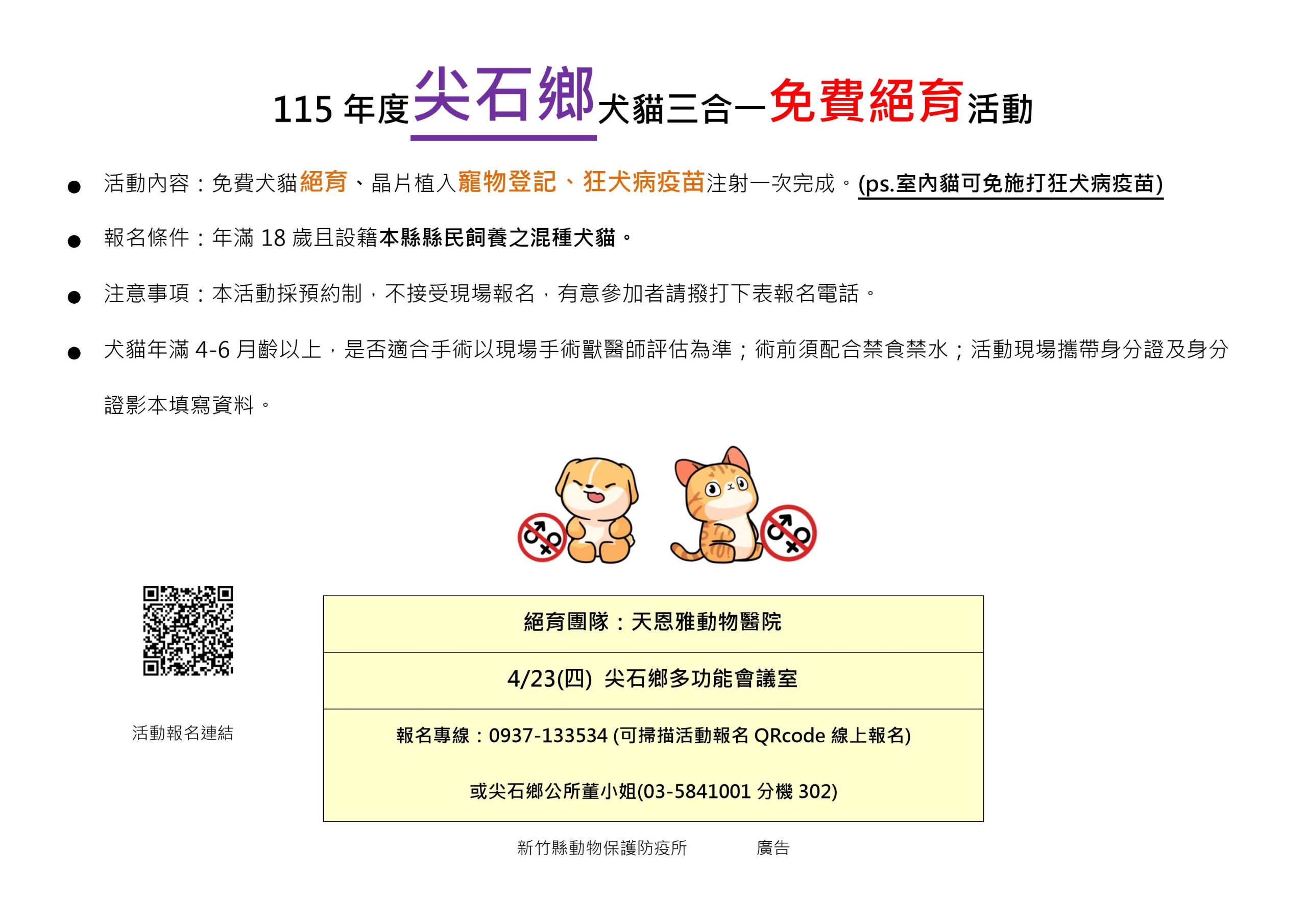 115年度犬貓三合一免費絕育活動2022年11月4日/在: 動物保護專區, 犬貓絕育 其它絕育方案 https://apc.hsinchu.gov.tw/wp-content/uploads/2020/07/登記證.jpg 1485 1152 adjecttt /wp-content/uploads/2025/04/logo22.png adjecttt2022-11-04 14:54:172026-03-20 10:03:02115年度犬貓三合一免費絕育活動